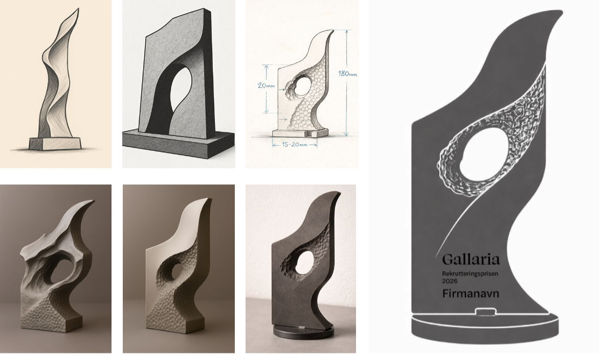 Plankettene som deles ut til prisvinnerne på Gallaria er derfor mer enn et fysisk objekt. De er et konkret bevis på regionens vilje og evne til å samarbeide, finne løsninger og stå i krevende prosesser også når det krever justeringer underveis. Vi er stolte av å ha fått gi denne symbolikken form, og av å ha levert design som er ment å vare i mange år fremover og ikke minst som får stå til pynt hos stolte og dyktige bedrifter i Ranaregionen.